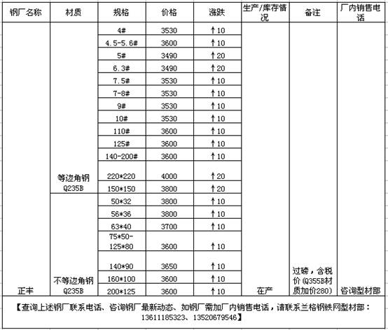 5月13日(9:28)唐山型材厂角钢实时调价汇总表