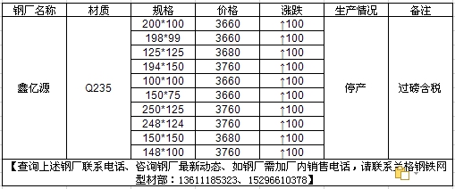5月13日(9:20)唐山型材厂H型钢实时调价汇总