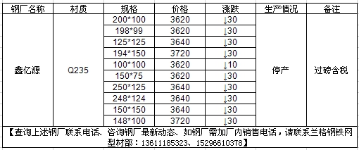 5月25日(9:23)唐山型材厂H型钢实时调价汇总