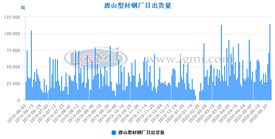 兰格调研:6月1日唐山型材钢厂出货量