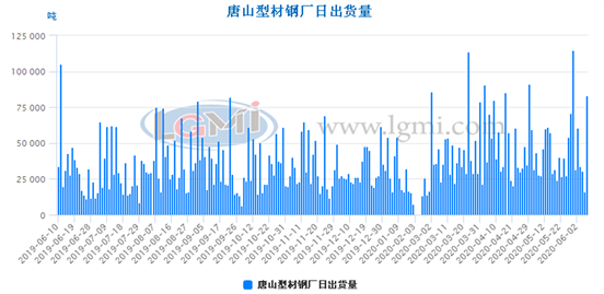 兰格调研:6月3日唐山型材钢厂出货量