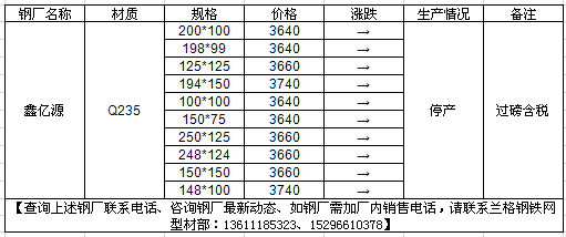 6月15日唐山鑫亿源H型钢价格调整信息