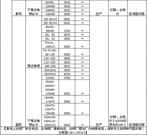 6月18日(9:35)唐山型材厂角钢实时调价汇总