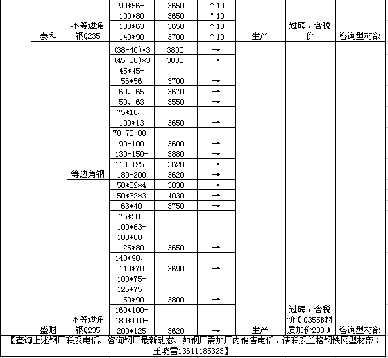 6月18日唐山盛财角钢价格调整信息
