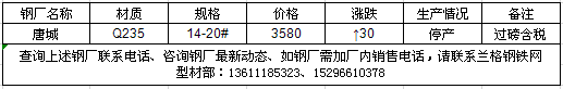 6月18日(9:20)唐山型材厂工字钢实时调价汇总