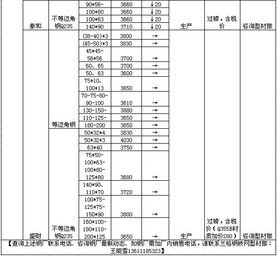 6月22日唐山盛财角钢价格调整信息