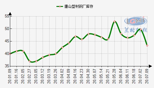 - 兰格调研:7月10日唐山型材钢厂出货量2020-7-10