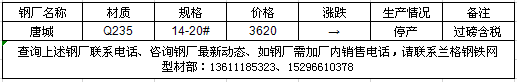 7月15日唐山唐城工字钢价格调整信息