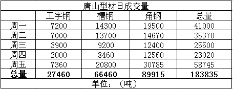 唐山型材厂出货量统计:截止20日唐山型材轧钢厂出货总量18.3万吨,较上周(8.10-8.14)减2.7万吨。