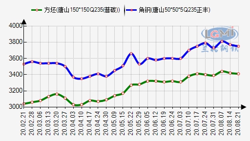 钢坯成本:截止8月20日午后唐山普碳方坯含税出厂价格3410元,较上周同期(8.14)跌10元。