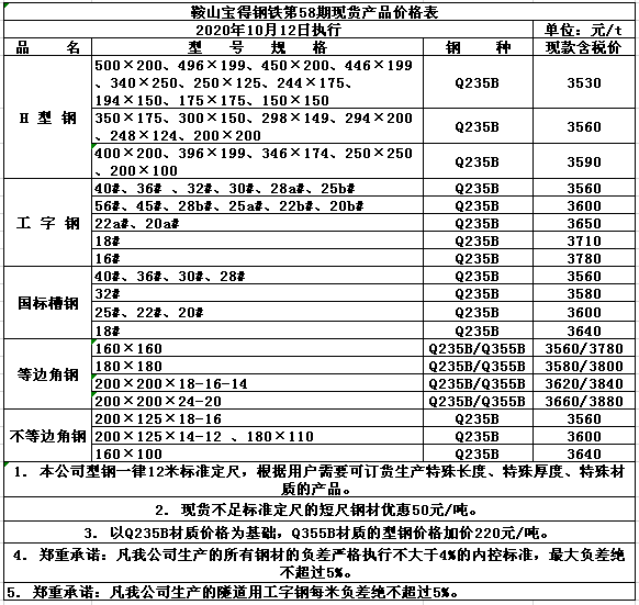 10月10日(9点)唐山型材厂H型钢实时调价汇总