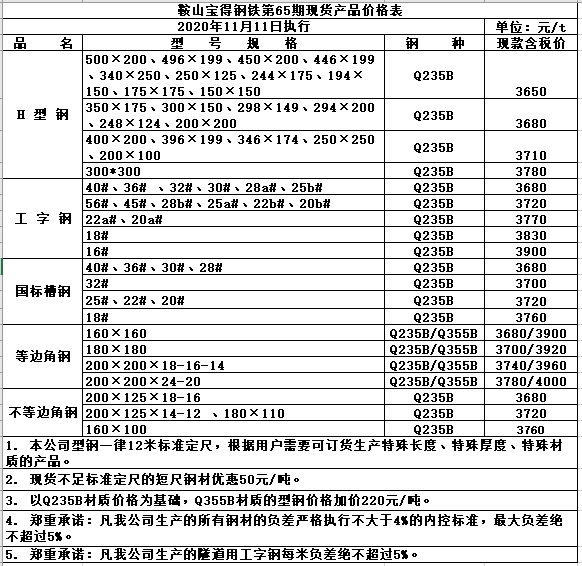 11月11日(9:35)唐山型材厂角钢实时调价汇总表