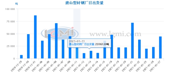 兰格调研:27日唐山型材价格继续走强,期货,钢坯上涨提振,市场低价成交可,厂商积极提价。截至16:30统计唐山24家型材钢厂成交总量约4.5万吨,较上一个交易日上涨了90.38%。其中,工字钢7573吨;槽钢17670吨;角钢19400吨。