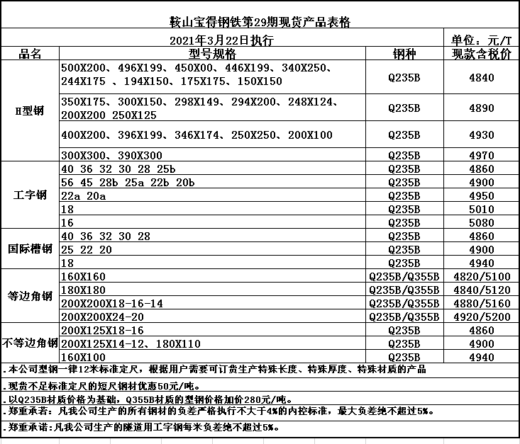 4月1日(10:00)唐山型材厂槽钢实时调价汇总