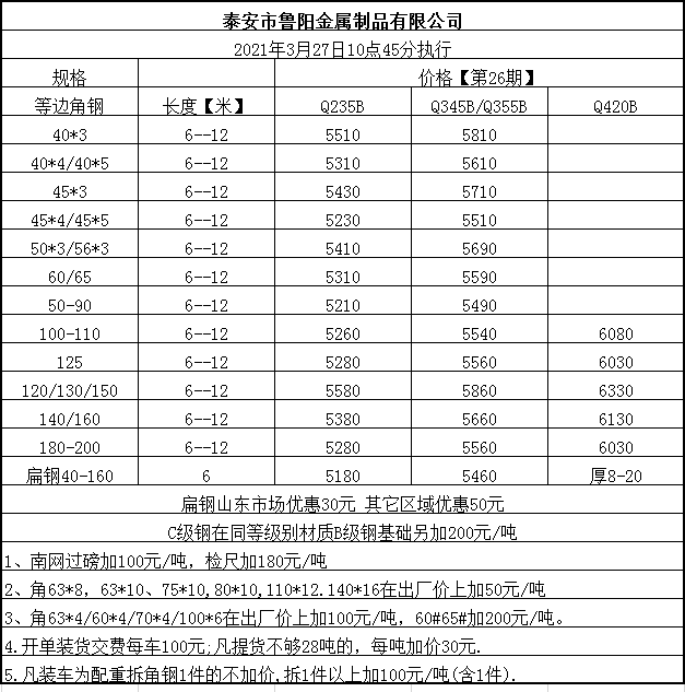 4月1日(9:40)唐山型材厂角钢实时调价汇总
