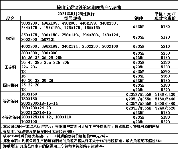 5月28日(10点)唐山型材厂H型钢实时调价汇总