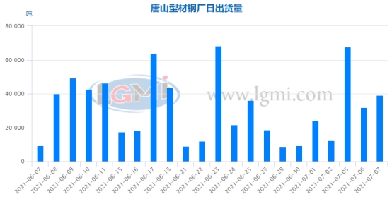 兰格调研:7日唐山型材价格大幅上涨,午前高位成交缓,午后期钢暴涨刺激,交投放量,厂商报价多次调涨。截止16:30统计唐山24家型材钢厂成交总量39000吨,较上一交易日升21.8%。其中,工字钢5800吨;槽钢13900吨;角钢19300吨。