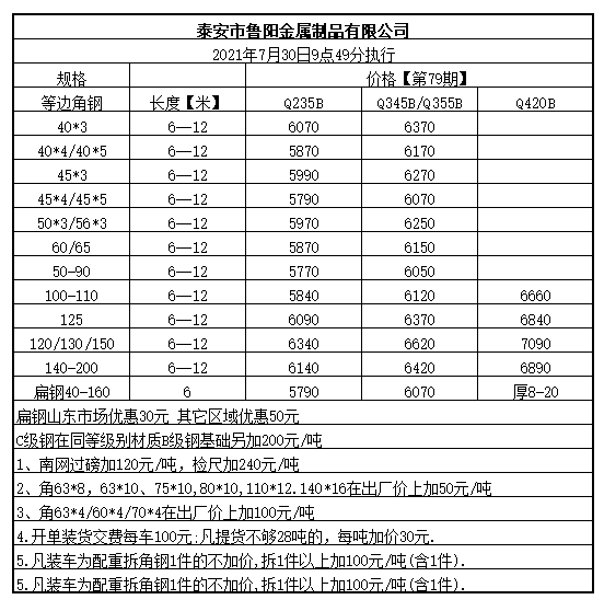 泰安市鲁阳型材第79期价格政策