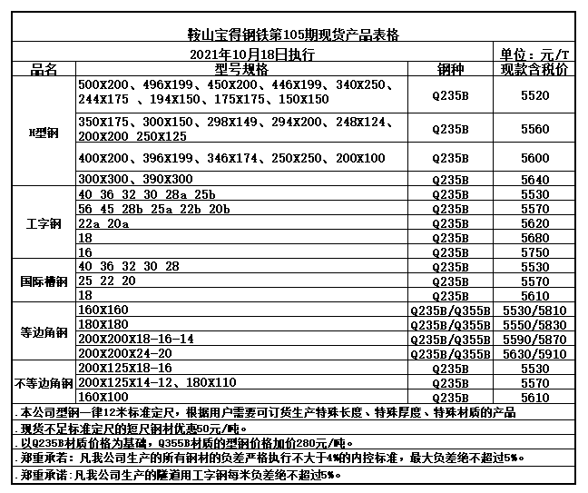10月18日唐山玉田祥泰钢厂工字钢调价信息