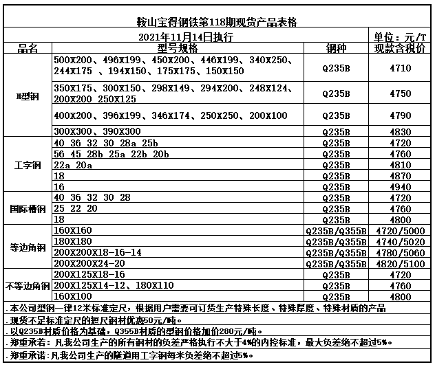 11月13日唐山瑞兴钢厂工字钢调价信息
