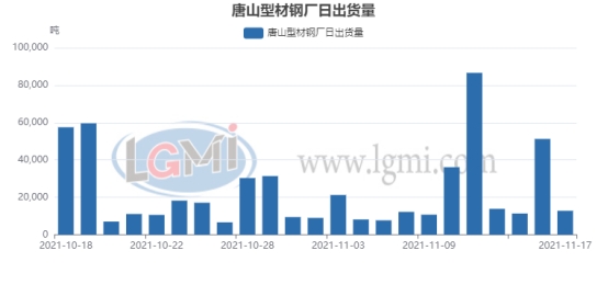 兰格调研:17日唐山型材价格主稳盘整,期螺震荡运行,市场持谨慎观望态度,多以刚需补库为主,成交欠佳。据统计截止16:30唐山24家型材钢厂出货总量约12810吨,环比下降75%,其中,工字钢1680吨;槽钢2290吨;角钢8840吨