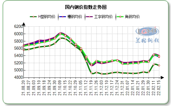 2月21日国内型材价格偏强盘整,整体周末累计上调20-50区间,上周五发改委发文称促进计划项目开工,给市场需求启动带来积极信号,市场情绪好转,周五夜盘开始期货市场止跌翻红,今日期货偏强震荡,交投氛围有所改善,部分下游少量补库,工程企业库存偏低,H型钢资源集中在上游厂家和代理批发环节,二月份临近月底,商家消库心态强,今日价格多可议,冬奥闭幕后今日唐山轧材厂部分开工,供应有所缓解,整体资源供应相对稳定,需求启动节点和空间仍是目前行情主要关注因素,但同时需要关注残奥会和两会期间供应情况和工地开工情况,因此,预计短期仍为需求试探观察阶段,价格震荡盘整。