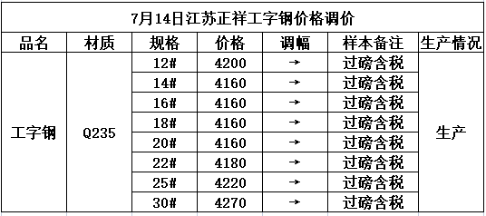 7月14日江苏正祥工字钢价格持稳