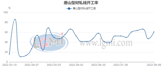 兰格钢铁网统计唐山24家样本轧钢企业共36条轧线,停产或检修14条,较上周减少5条,开工率为61.11%,较上周上升13.89%,本周唐山地区调坯轧钢厂去库较快,生产积极性有所提高,开工率回升。