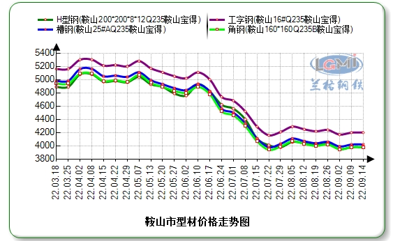 据兰格云商平台监测数据显示:今日鞍山市场16#工字钢价格为4200元;25#A槽钢价格为4020元;160*160角钢价格为3980元;200×200H型钢价格为3980元。