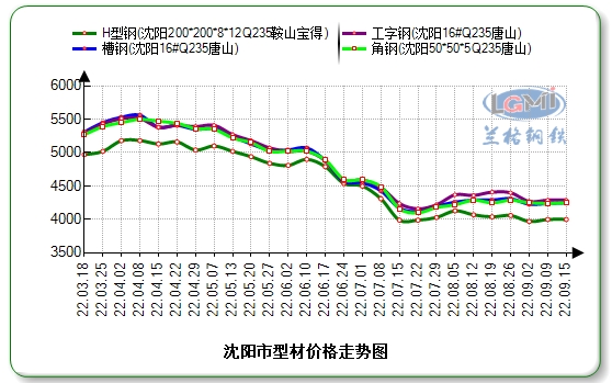 据兰格云商平台监测数据显示:今日沈阳市场16#工字钢价格为4290元;16#槽钢价格为4250元;5#角钢价格为4250元;200×200H型钢价格为4000元。