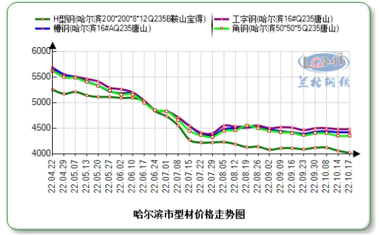 据兰格云商平台监测数据显示:今日哈尔滨市场16#工字钢价格为4480元;16#A槽钢价格为4420元;5#角钢价格为4350元;200×200H型钢价格为4020元(国标检尺价格)。
