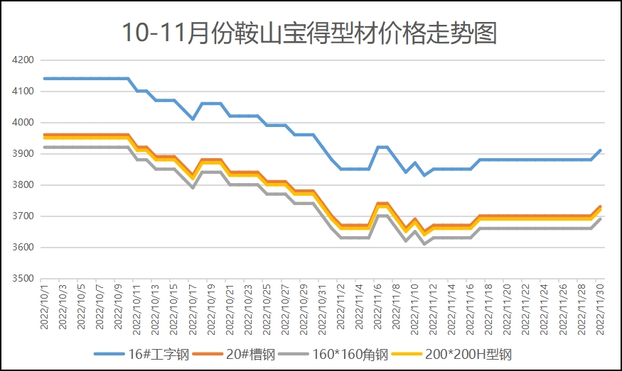 图2:10-11月份鞍山宝得型材价格走势图