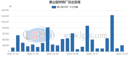 兰格调研:23日唐山型材价格窄幅下跌,黑色期螺震荡盘整,下游谨慎观市采货计划后置,仅个别厂家低价成交好转,整体交易氛围显清冷,据统计截止15:45唐山24家型材钢厂出货总量约21230吨,较上一个工作日涨97.30%,其中,工字钢2170吨;槽钢5860吨;角钢13200吨。