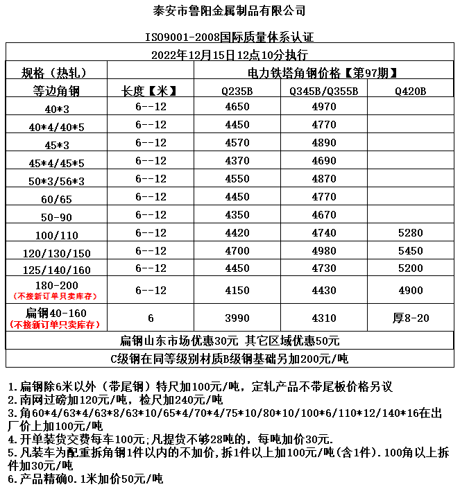 12月30日(9:28唐山盛财钢厂槽钢调价信息