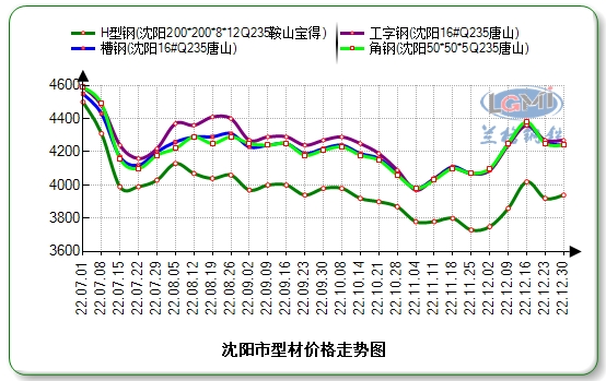 据兰格钢铁网调研数据数据显示:今日沈阳市场16#工字钢价格为4270元,较上周同期持平;16#槽钢价格为4240元,较上周同期降20元;5#角钢价格为4240元,较上周同期降10元;200×200H型钢价格为3940元,较上周同期涨20元。