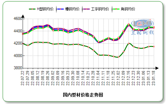截至1月18日,国内市场25#工字钢平均价格为4421元,较上一工作日统计价格持稳;25#槽钢平均价格为4503元,较上一工作日统计价格持稳;5#角钢均价为4388元,较上一工作日统计价格持稳;200×200H型钢平均价格为4040元,较上一工作日统计价格持平。