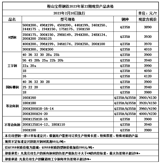 2月13日(9点)唐山型材钢厂工字钢实时调价汇总