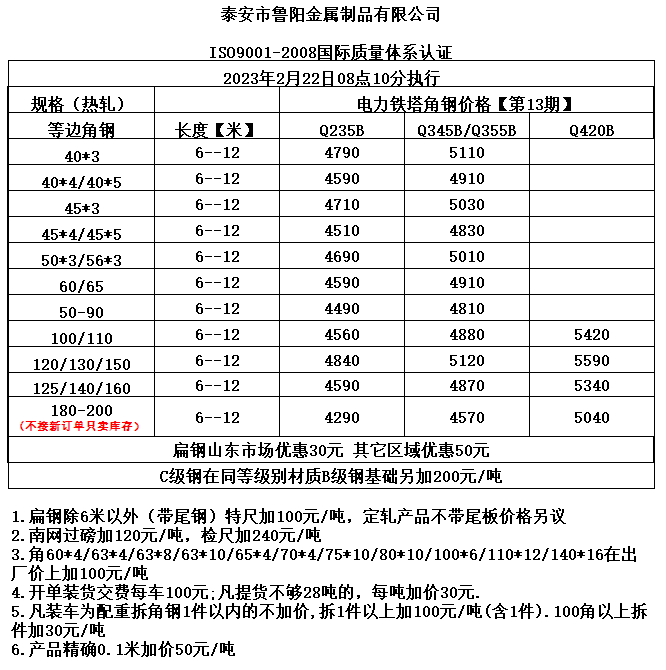 2月27日(10:18)唐山正丰钢厂角钢调价信息