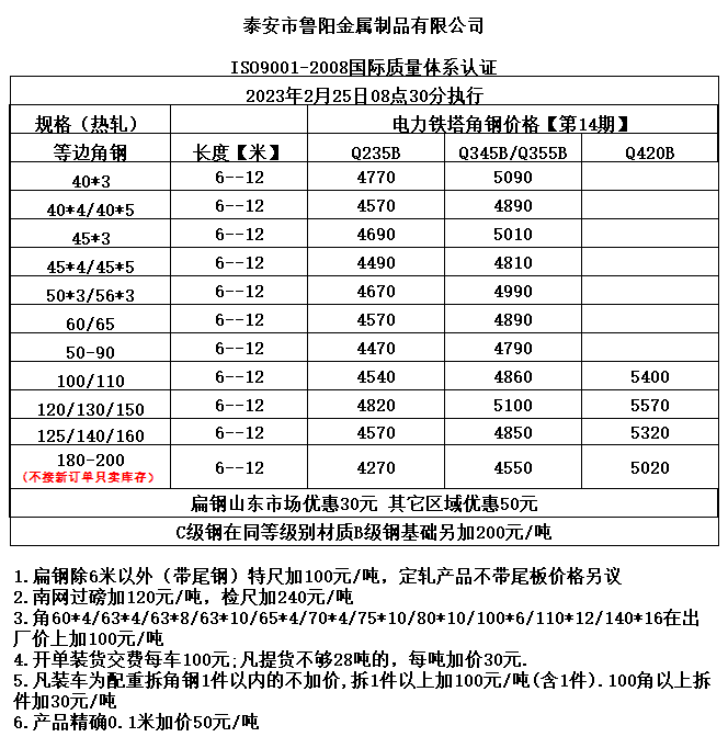 2月27日(10:18)唐山正丰钢厂角钢调价信息