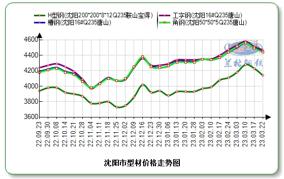 据兰格云商平台监测数据显示:今日沈阳市场16#工字钢价格为4470元;16#槽钢价格为4450元;5#角钢价格为4440元;200×200H型钢价格为4140元。