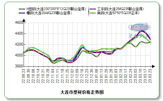 3月23日大连型材市场价格弱稳运行,期螺震荡后跳水,市场交投表现一般。一方面,凌晨美联储加息25基点消息落地,前期利空出尽带来夜盘短暂翻红,午前出货略有好转,但随着市场对供需基本面好转信心不足,场内观望情绪持续酝酿,午后出货惨淡,今日总体成交一般。午后鞍山宝得钢材价格持稳,最低钢材价格为4100元,尾盘普碳方坯价格降60元,执行3840元含税出厂,预计明日大连型材价格趋弱运行。