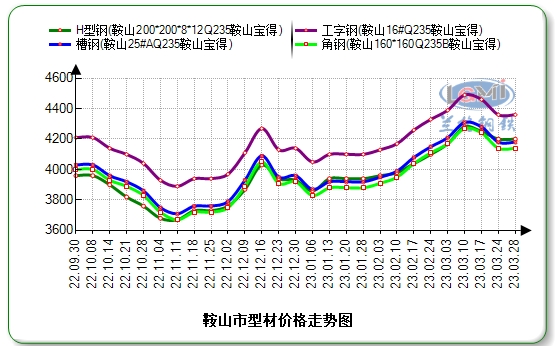 据兰格钢铁网调研数据数据显示:今日鞍山市场16#工字钢价格为4360元;25#A槽钢价格为4180元;160*160角钢价格为4140元;200×200H型钢价格为4200元。