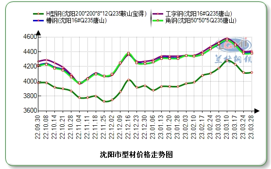 据兰格云商平台监测数据显示:今日沈阳市场16#工字钢价格为4410元;16#槽钢价格为4390元;5#角钢价格为4380元;200×200H型钢价格为4120元。