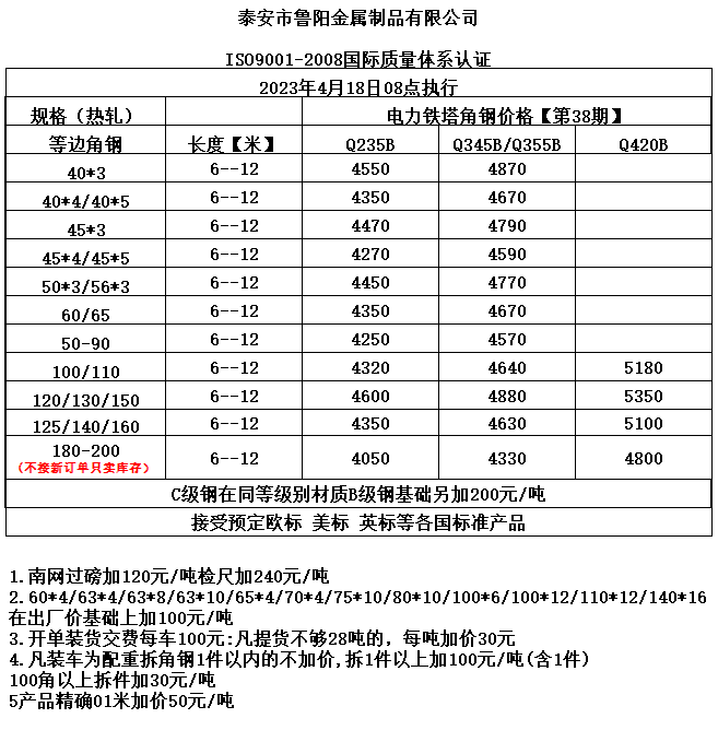 4月19日唐山玉田祥泰钢厂工字钢调价信息