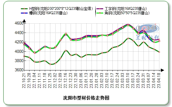 据兰格云商平台监测数据显示:今日沈阳市场16#工字钢价格为4260元;16#槽钢价格为4220元;5#角钢价格为4220元;200×200H型钢价格为3990元。