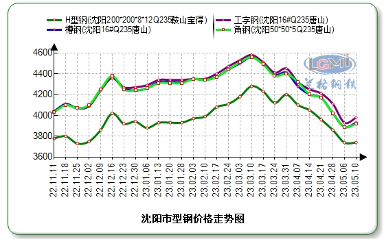 据兰格云商平台监测数据显示:今日沈阳市场16#工字钢价格为3980元;16#槽钢价格为3930元;5#角钢价格为3920元;200×200H型钢价格为3740元。