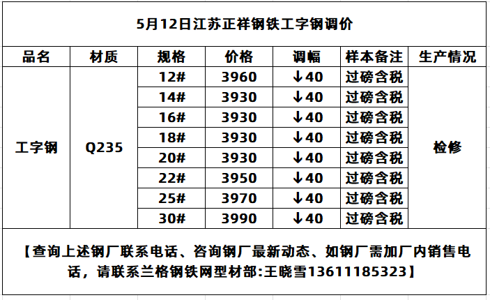 • 5月12日山西晋南钢铁型钢挂牌价格降20-40