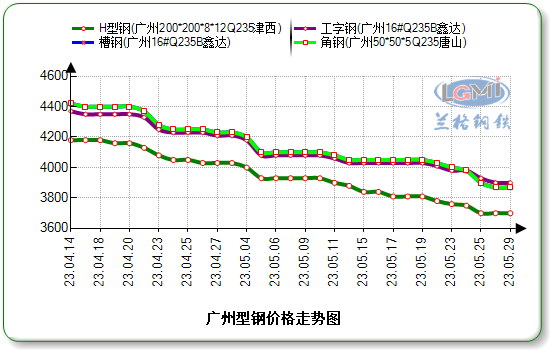 据兰格云商平台监测数据显示:今日广州市场鑫达产16#工字钢价格为3900元,唐山产16#槽钢价格为3870元,唐山产5#角钢价格为3870元,津西产200×200H型钢价格为 3700元,以上价格均与上周五持平。