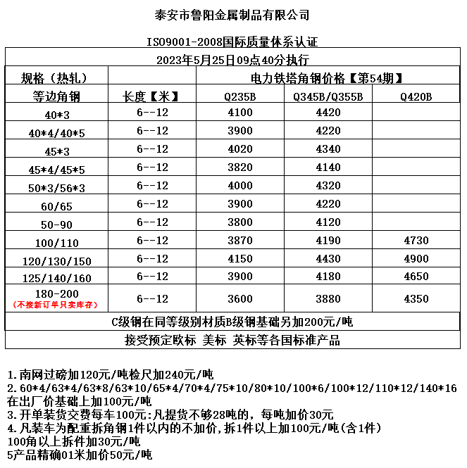 • 5月30日(09:30)唐山型钢厂角钢实时调价汇总