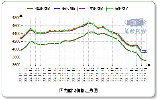 截至6月1日,国内市场25#工字钢平均价格为3911元,较上一工作日统计价格涨5元;25#槽钢平均价格为3952元,较上一个工作日统计价格涨17元;5#角钢均价为3872元,较上一个工作日统计价格涨10元;200×200H型钢平均价格为3596元,较上一个工作日统计价格降4元。